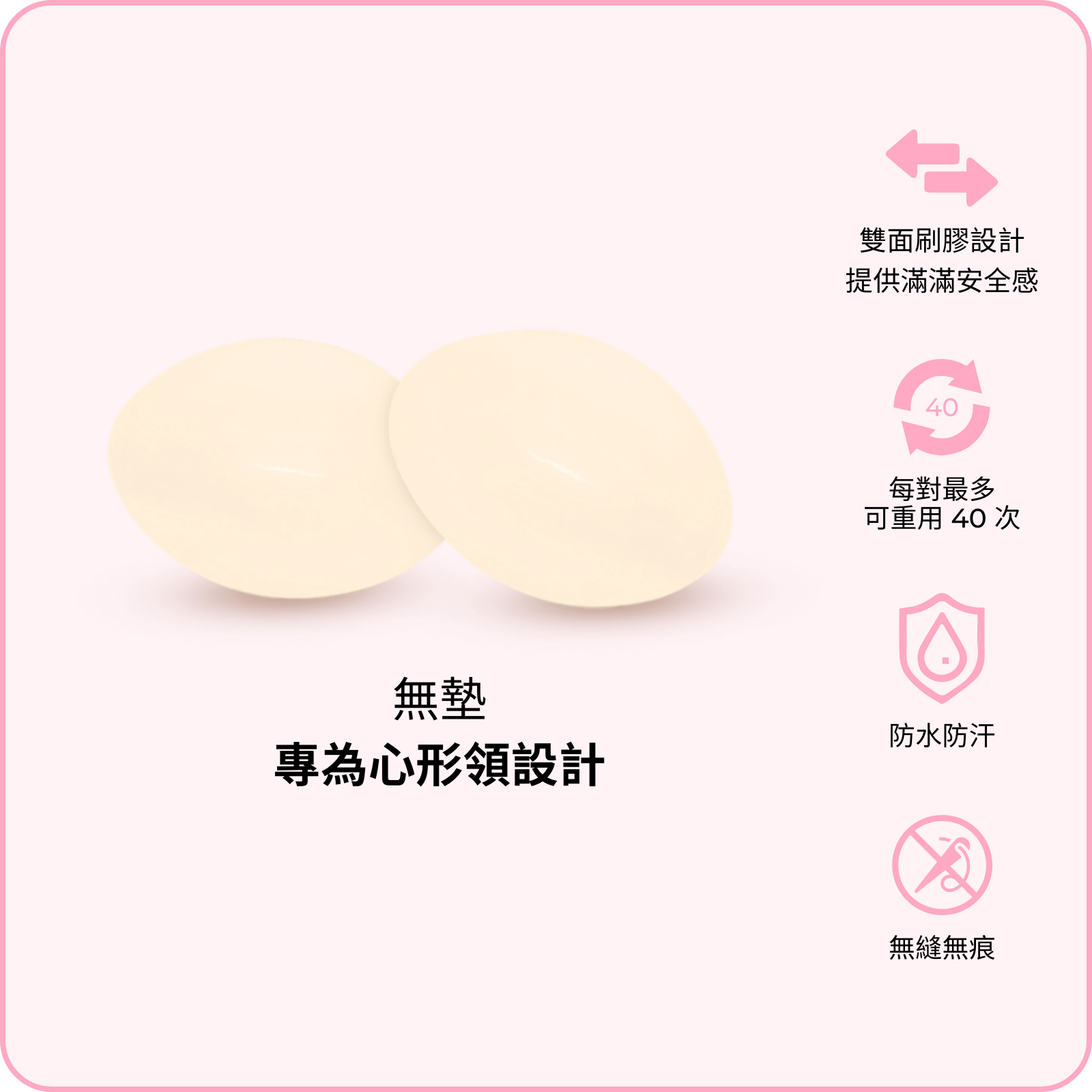 細微提升胸墊: 縮短版隱形提升胸墊,薄墊款式,專門提拉塑形,唔會額外升 Cup,適合心型領上衣。