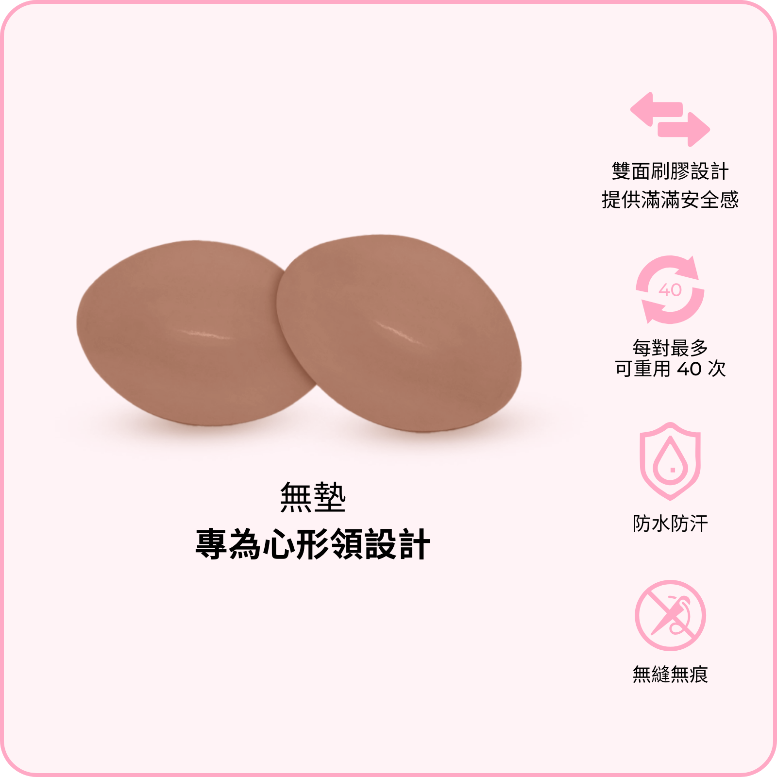 超級升「級」胸墊: 縮短版深V升「級」胸墊,提拉豐胸升足 2 個 Cup,適合心型領上衣。