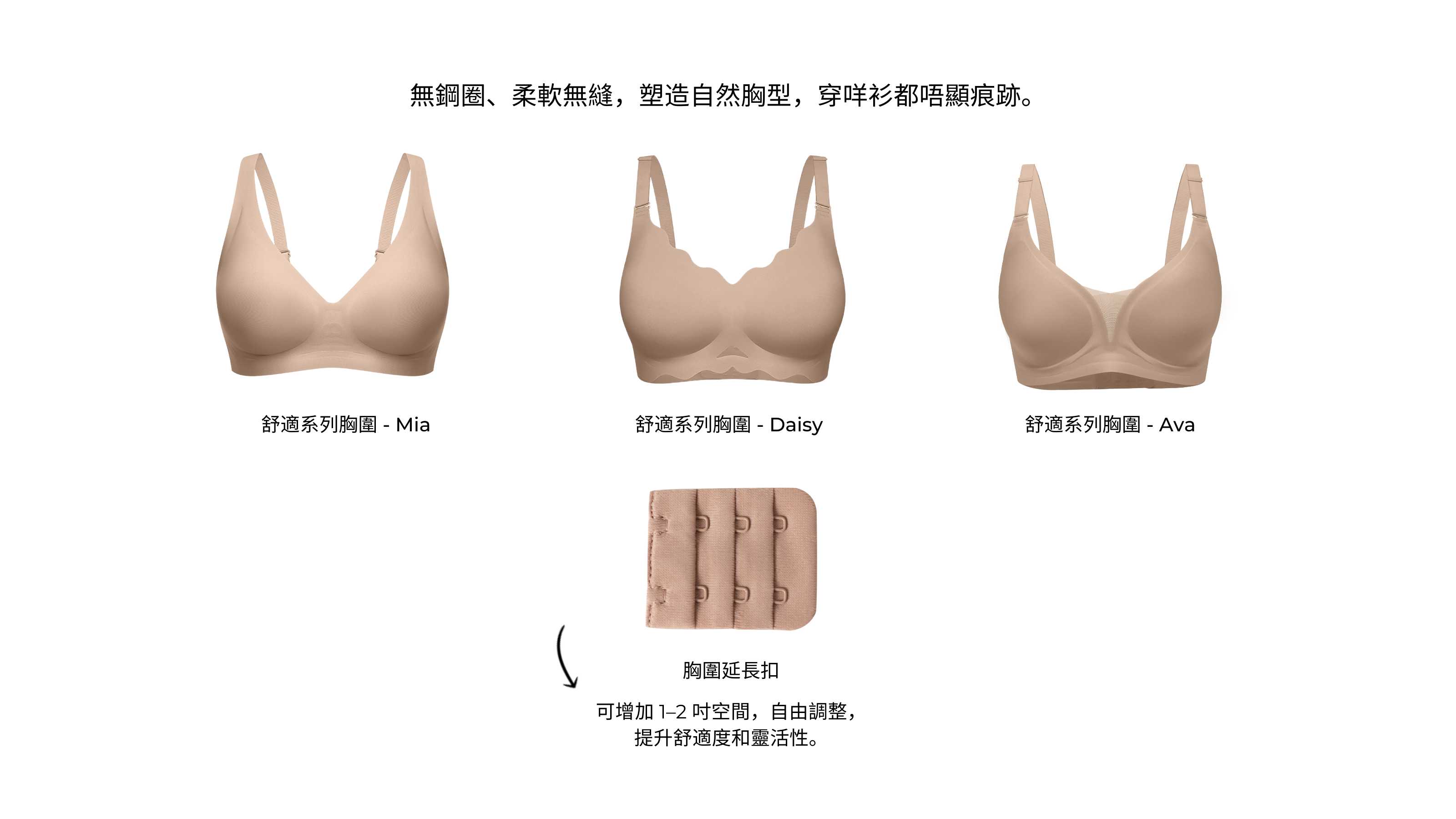 無鋼圈、零束縛、零刺痛,純粹舒適,自然跟住您嘅動作。每件胸圍都採用柔軟貼身嘅布料,好似第二層肌膚,襯墊設計修身順滑,從任何角度都顯得完美。