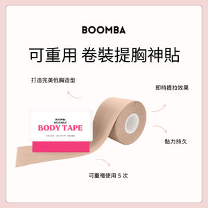 BOOMBA's Reusable Body Tape can be reusable up to five times. Designed to contour with your shapes, our body tape is gentle yet strong, providing long-lasting results for up to 12 hours.