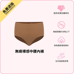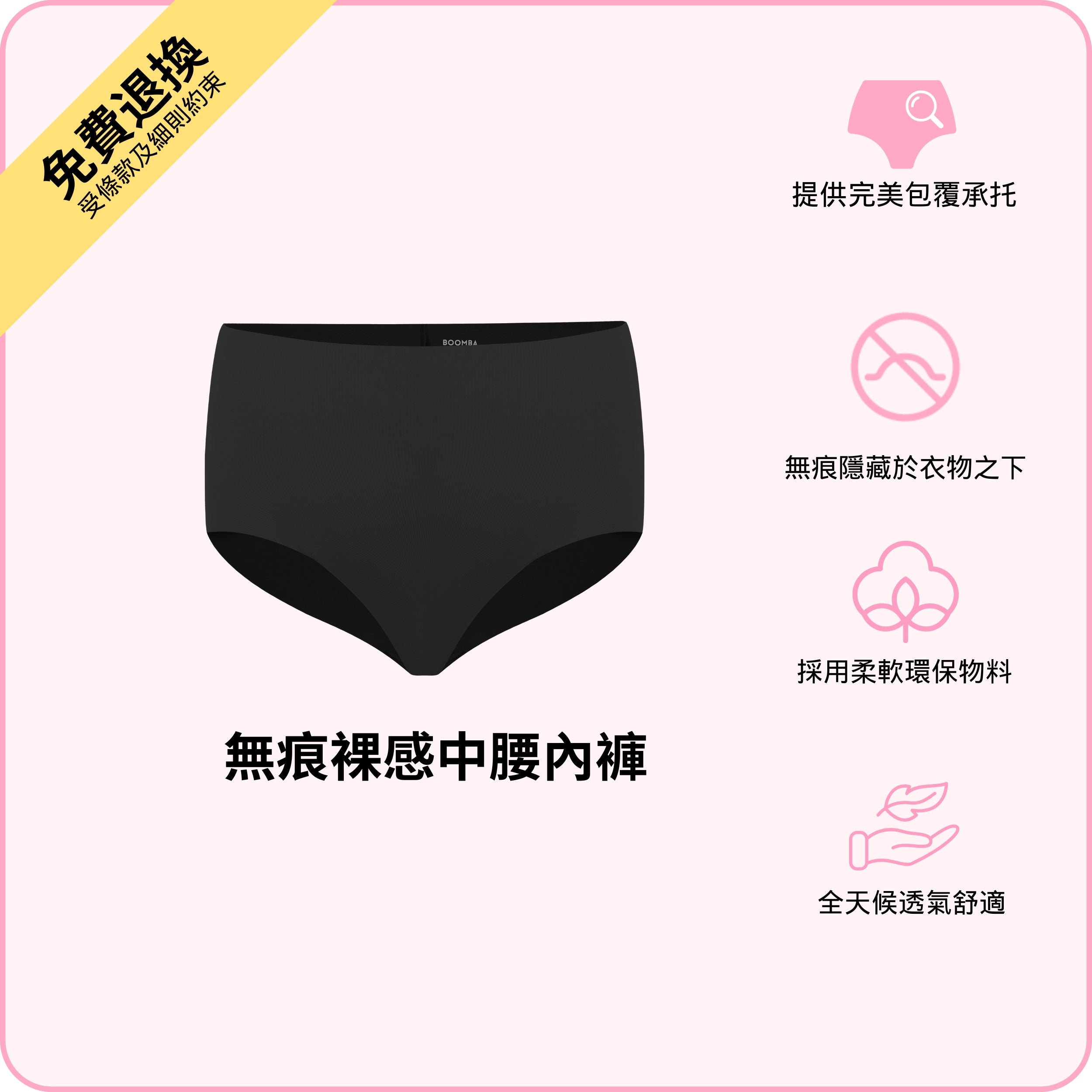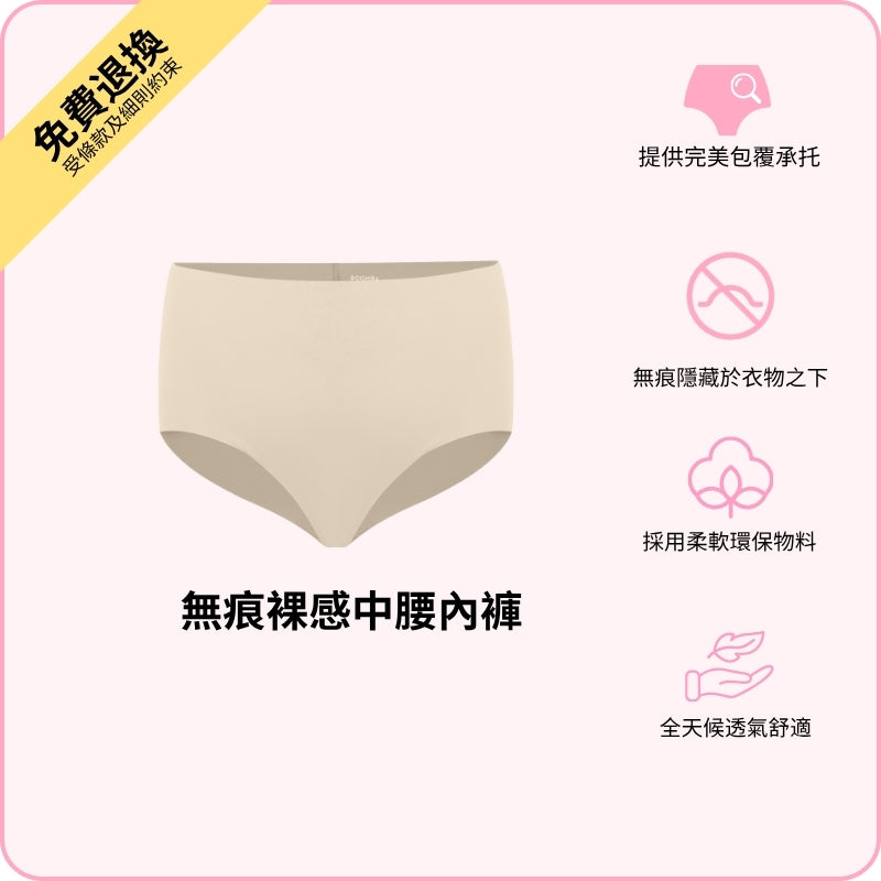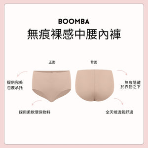 BOOMBA 無痕裸感中腰內褲柔軟貼身,好似溫柔擁抱你嘅翹臀咁舒服!超柔滑無痕布料,輕如無物嘅舒適感。中腰剪裁加包臀設計,完美修飾身形,無論喺屋企煲劇定係出街拍拖都啱著!換上呢條貼心內褲,全日都即刻充滿自信!