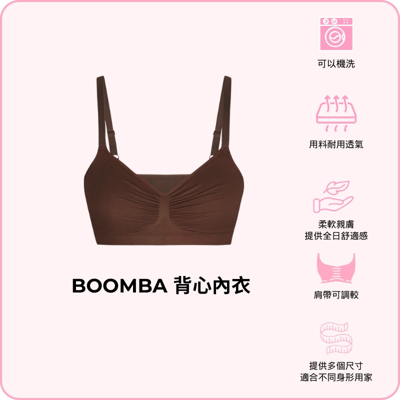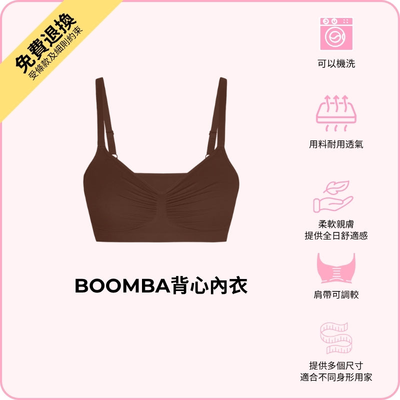 著上 BOOMBA 背心內衣,輕鬆打造時尚風格,同時全日感受舒適!內衣採用柔軟布料,即使冇鋼圈都有足夠承托;無縫設計配搭任何造型都可以保持無痕,你仲可以自己調較肩帶,令你著得更加貼身貼心!