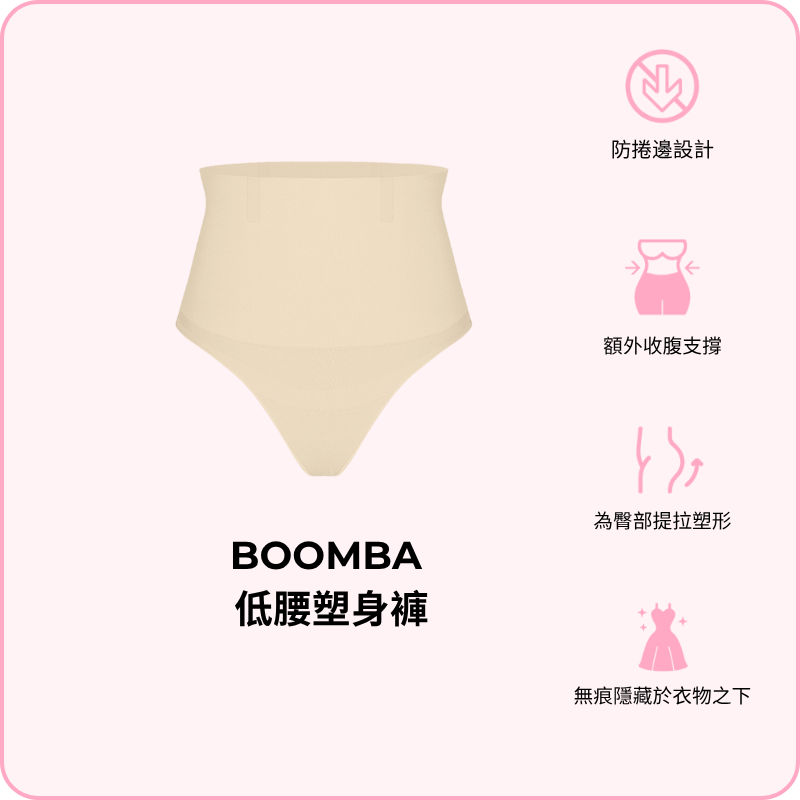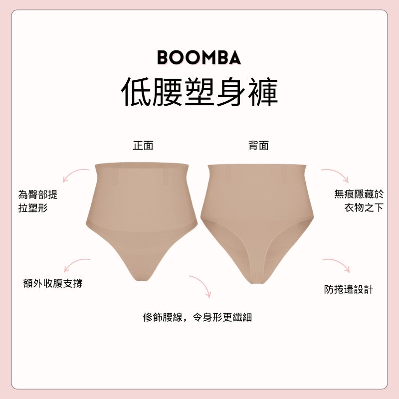 用 BOOMBA 低腰塑身褲塑造、修飾同時提升身材曲線。塑身褲採用厚身優質材料,提供足夠承托,同時有效收緊肚腩,令你輕鬆擁有纖細身段,散發無限自信。
