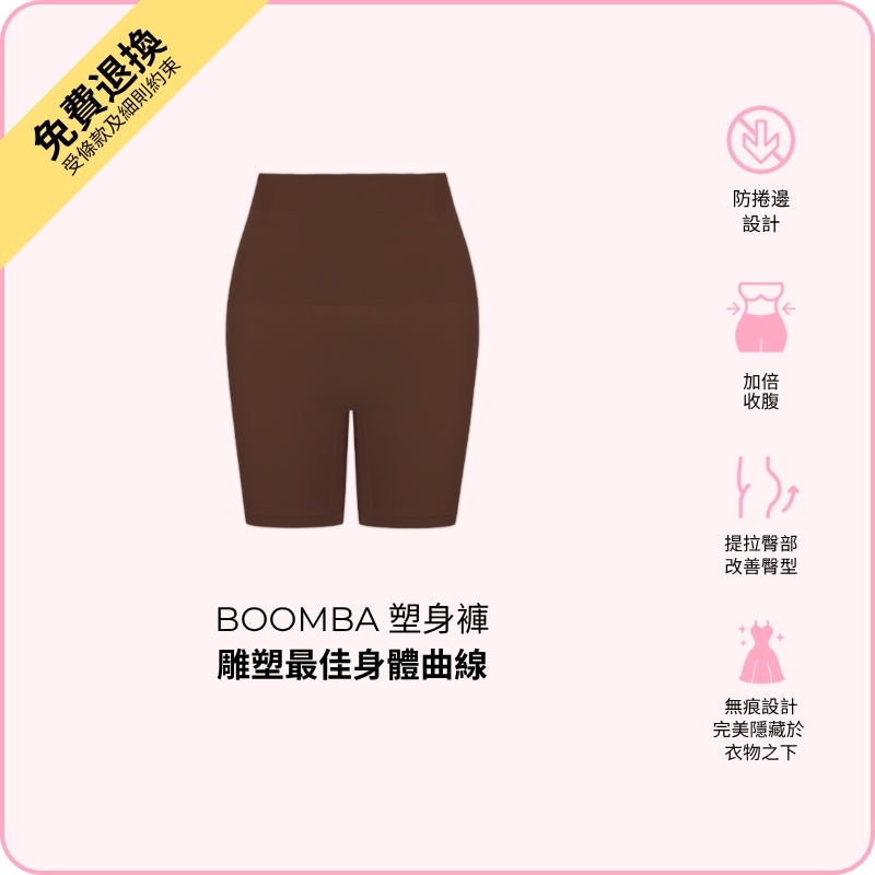 BOOMBA塑身褲完美貼合妳嘅曲線,輕鬆塑形、托高、修飾身形,由早午餐著到瞓覺都無問題.獨家防捲邊設計,全天候舒適,唔會成日拉拉扯扯或者移位.無論著咩衫都打造順滑線條.