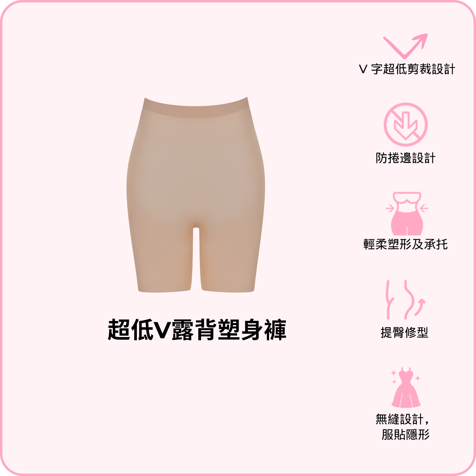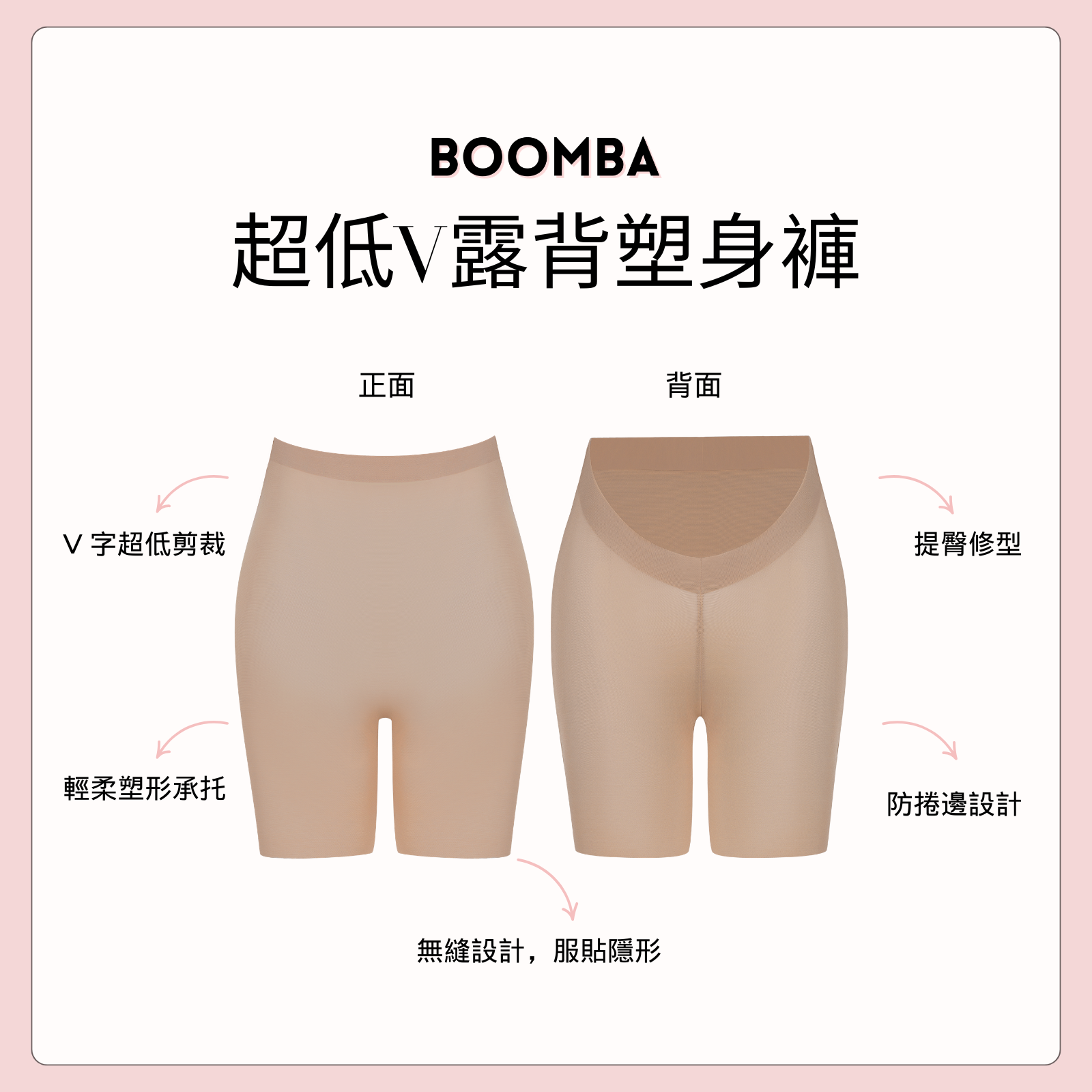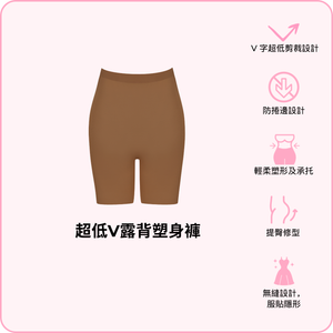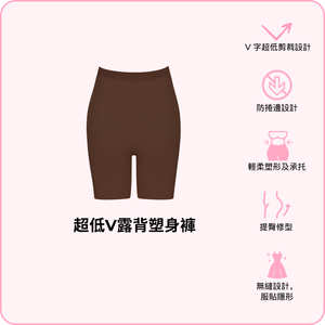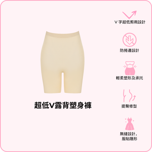 體驗舒適同自信 — BOOMBA 超低V露背塑身褲。