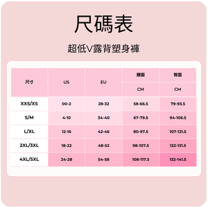 BOOMBA 超低V露背塑身褲 尺寸指南