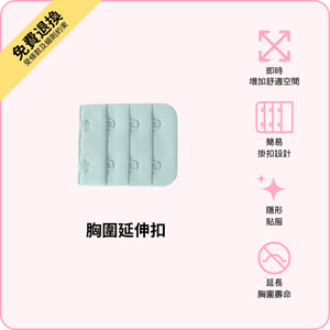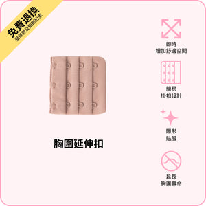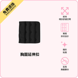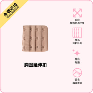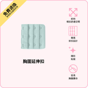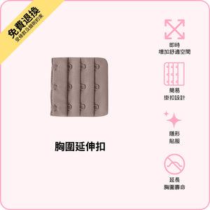 這並非將就穿不合身的胸圍,而是讓你的衣櫃更具彈性。 柔軟又靈活的設計可輕易扣上舒適系列系列或孕婦系列胸圍,讓你即時增加 1–2 吋的舒適空間,同時保持理想支撐度。特別適合哺乳中的媽媽,全程都能自由調整。外觀平滑貼服,完全隱藏於衣物之下。