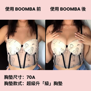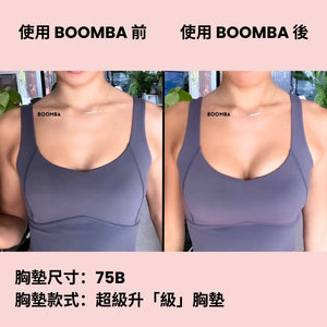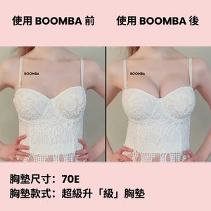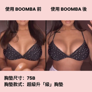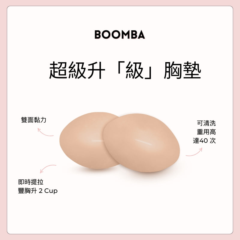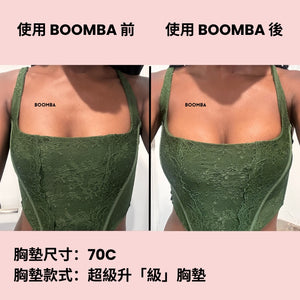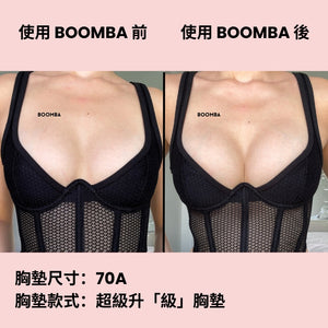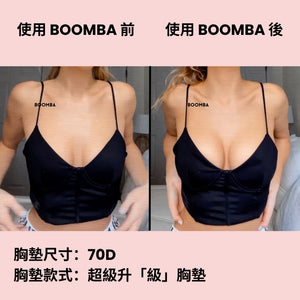 請注意,成效因乳房大小和形狀而異,效果將類似於雙重提升胸圍。 BOOMBA 胸墊最適合用於天然乳房。