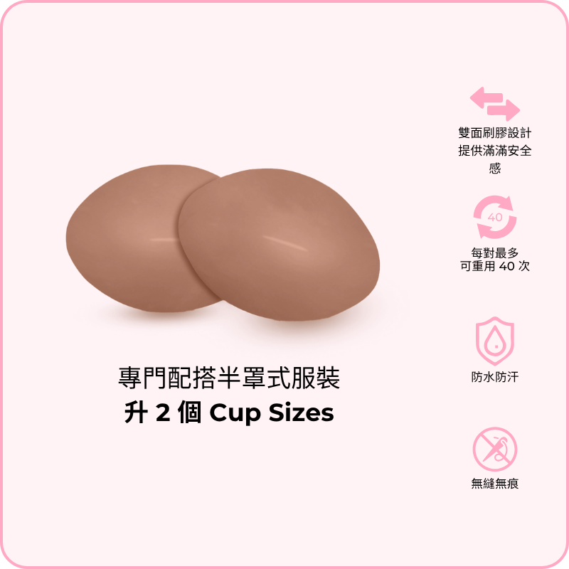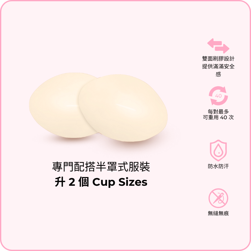 隱形提升胸墊: 薄墊款式,專門提拉塑形,唔會額外升 Cup,最啱配搭 Deep V 打扮同三角形比堅尼。