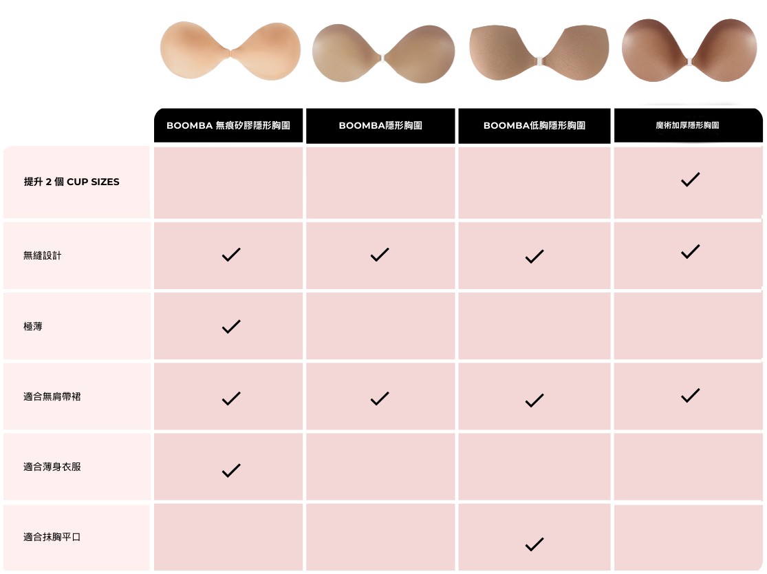 BOOMBA低胸隱形胸圍的尺碼指南demi-sticky
