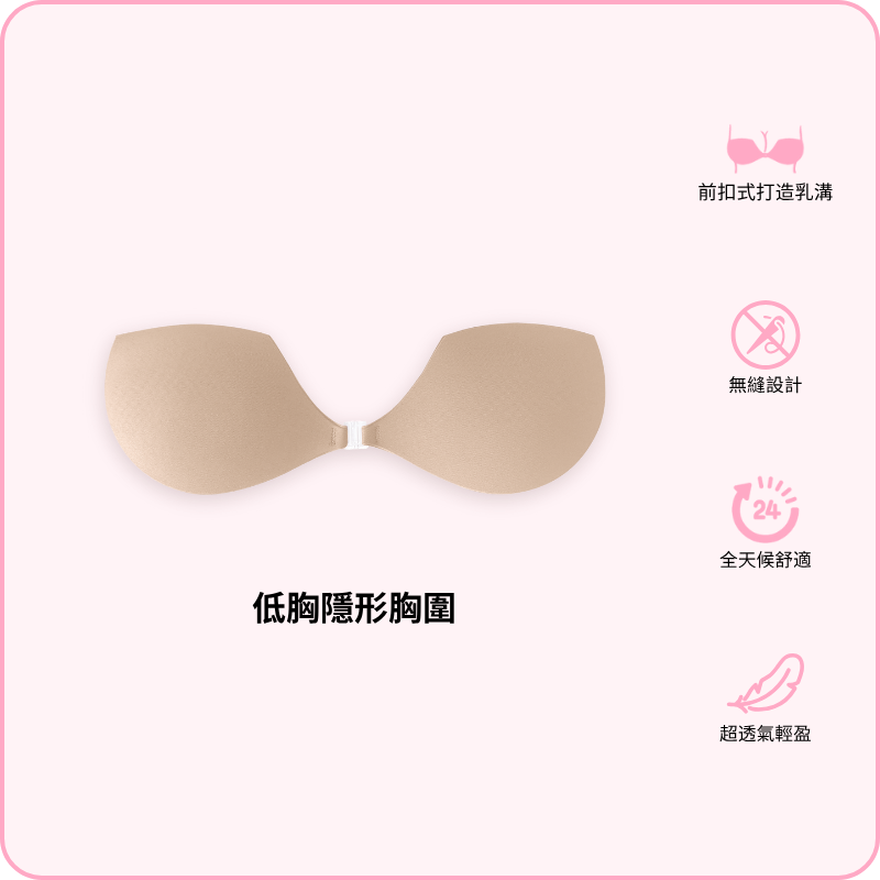 隱形提升胸墊: 薄墊款式,專門提拉塑形,唔會額外升 Cup,最啱配搭 Deep V 打扮同三角形比堅尼。