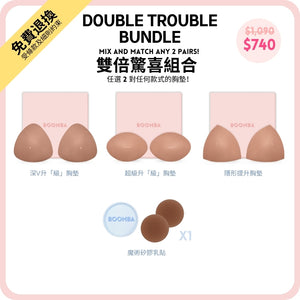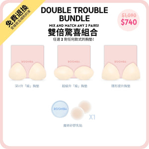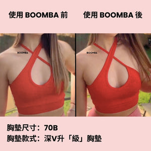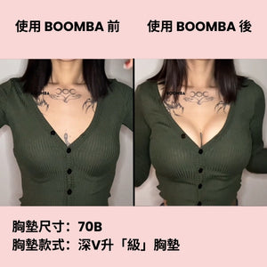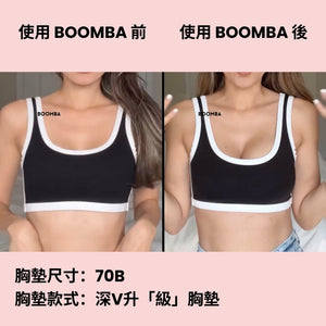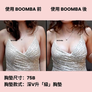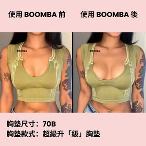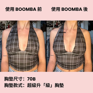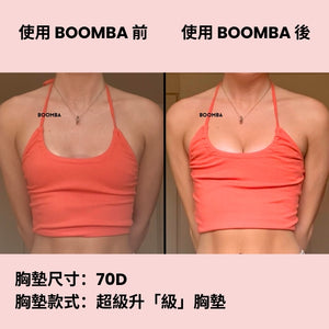 請注意,成效因乳房大小和形狀而異,效果將類似於雙重提升胸圍。 BOOMBA 胸墊最適合用於天然乳房。