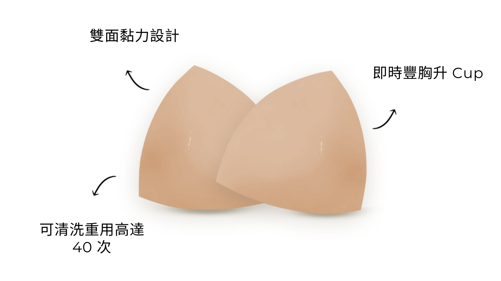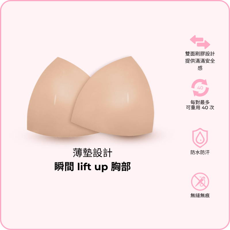 隱形提升胸墊: 薄墊款式,專門提拉塑形,唔會額外升 Cup,最啱配搭 Deep V 打扮同三角形比堅尼。