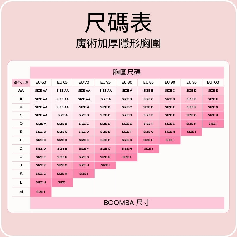 魔術加厚隱形胸圍的尺碼指南 Magic Padded Sticky Bra Size Chart