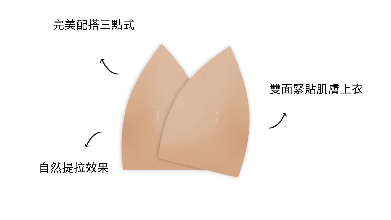 隱形提升胸墊: 薄墊款式,專門提拉塑形,唔會額外升 Cup,最啱配搭 Deep V 打扮同三角形比堅尼。