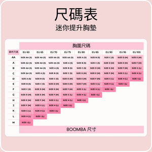 對於 75J 或以上尺寸,BOOMBA 隱形提升胸墊(薄墊)尺寸可達 75T。