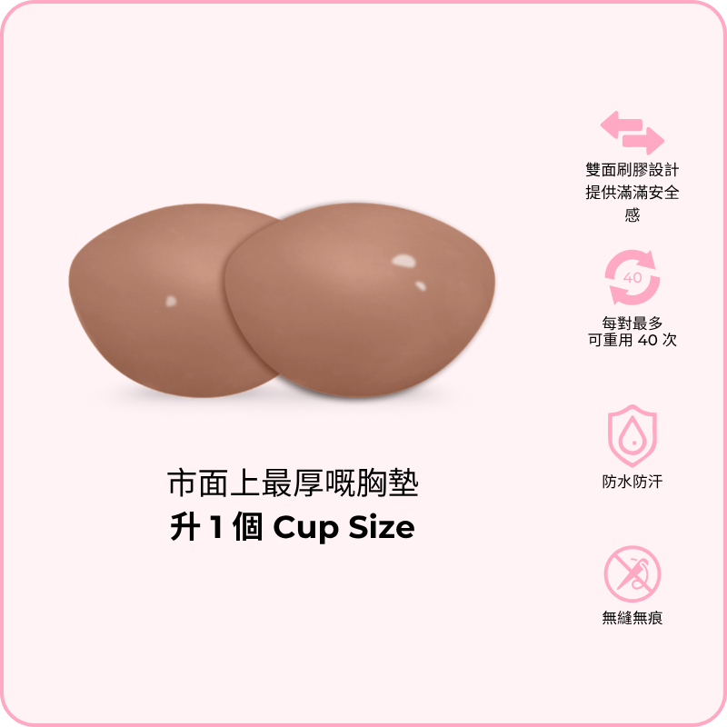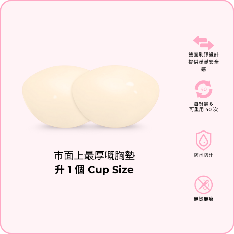 隱形提升胸墊: 薄墊款式,專門提拉塑形,唔會額外升 Cup,最啱配搭 Deep V 打扮同三角形比堅尼。