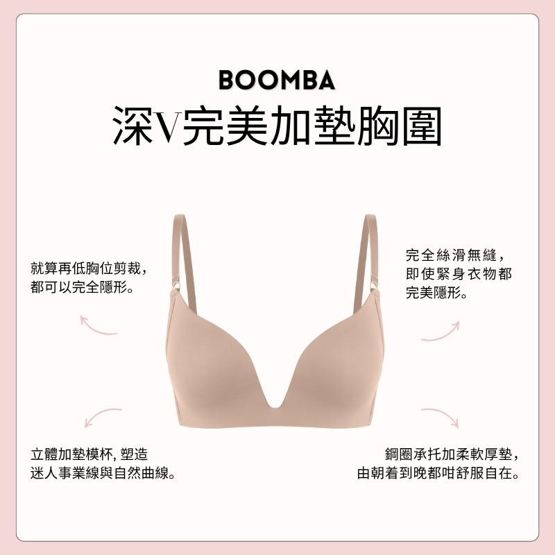 為咗確保產品舒適貼合,我哋採用高品質物料,設計過程中投入百份百細心專注,務求令用家使用BOOMBA 時可以感受到一件好內衣所帶來嘅改變!