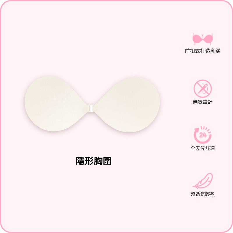 隱形提升胸墊: 薄墊款式,專門提拉塑形,唔會額外升 Cup,最啱配搭 Deep V 打扮同三角形比堅尼。