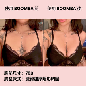 • “BOOMBA 的深V升「級」胸墊並不是在開玩笑說‘升「級」’。作為使用的胸墊最多的產品之一,它為你提供帖服舒適的自然提升效果。”
