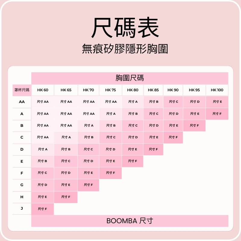 BOOMBA 無痕矽膠隱形胸圍的尺碼指南invisibra