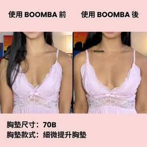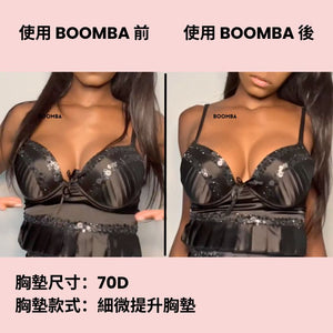 對於 75N 或以上尺寸,BOOMBA 隱形提升胸墊(薄墊)尺寸可達 75T。