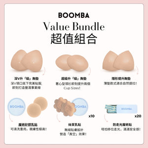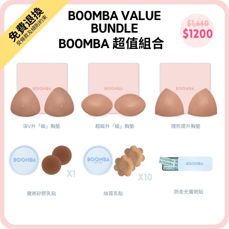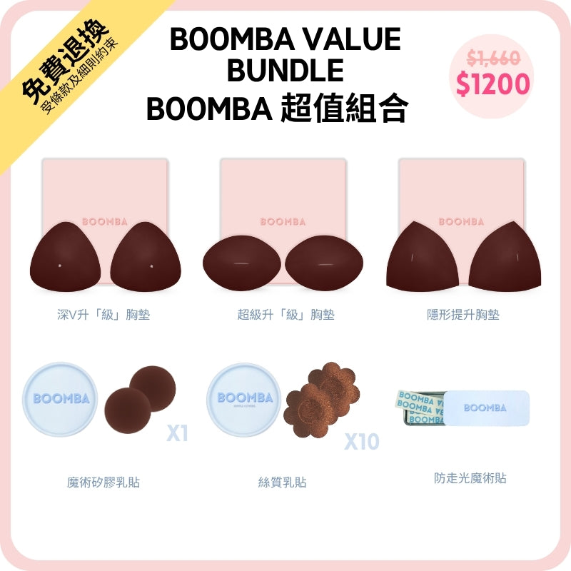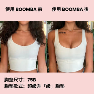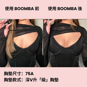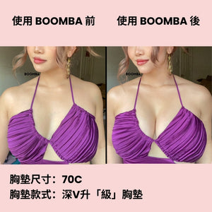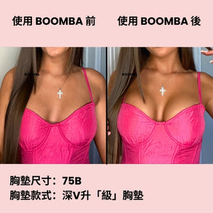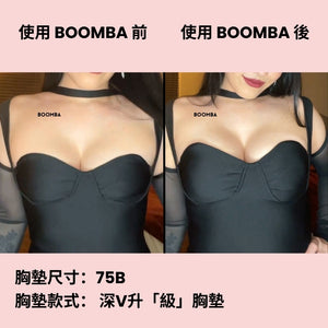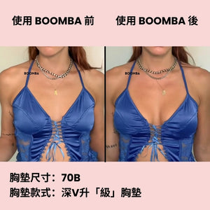 • “BOOMBA 的深V升「級」胸墊並不是在開玩笑說‘升「級」’。作為使用的胸墊最多的產品之一,它為你提供帖服舒適的自然提升效果。”