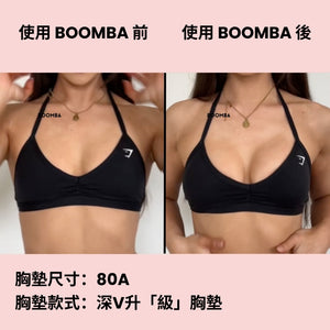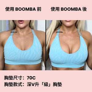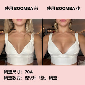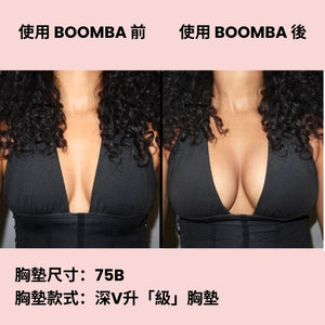 請注意,成效因乳房大小和形狀而異,效果將類似於雙重提升胸圍。 BOOMBA 胸墊最適合用於天然乳房。