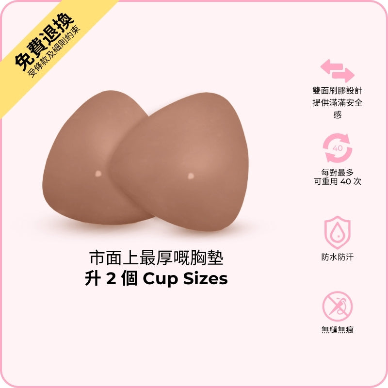 隱形提升胸墊: 薄墊款式,專門提拉塑形,唔會額外升 Cup,最啱配搭 Deep V 打扮同三角形比堅尼。