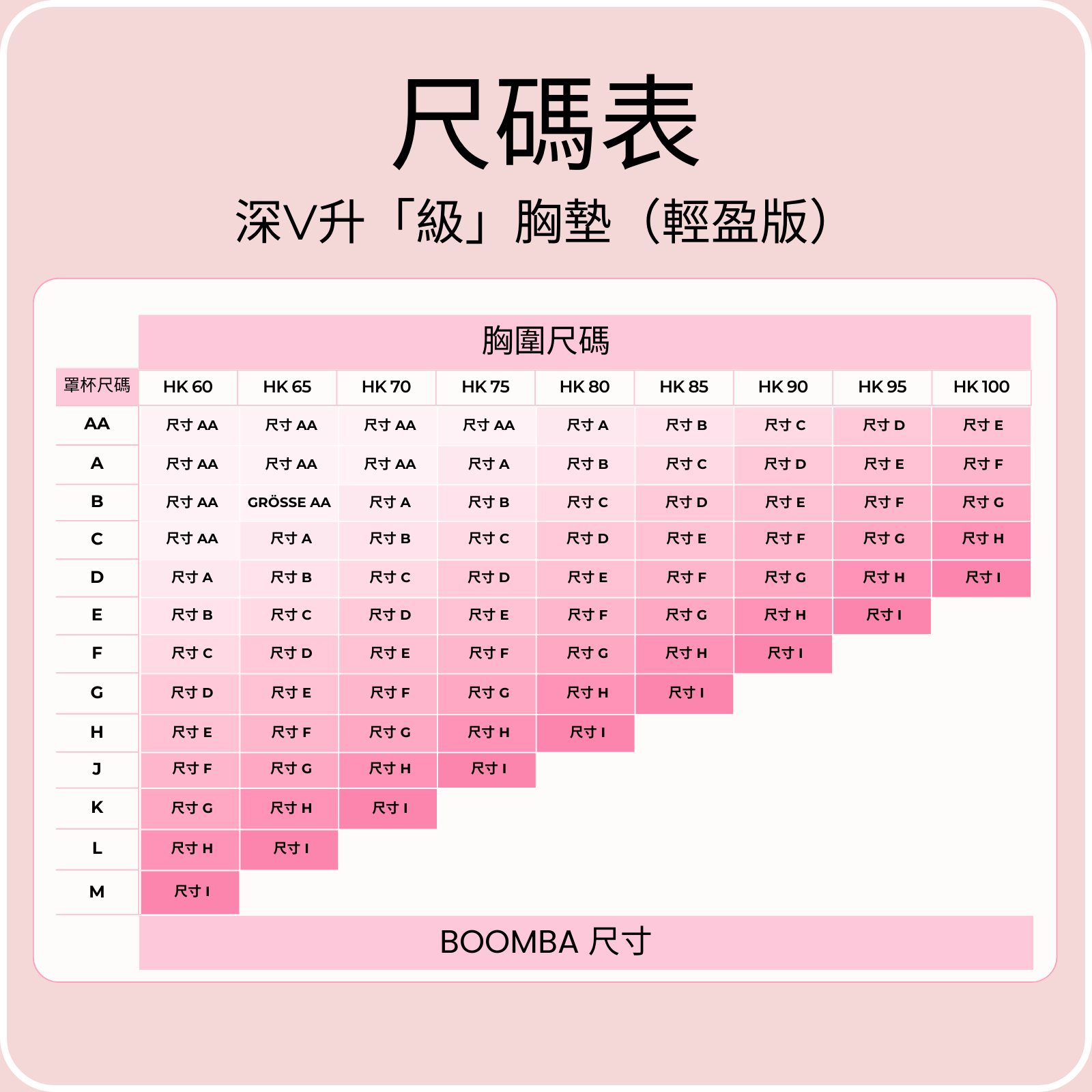 深V升「級」胸墊(輕盈版)尺碼指南